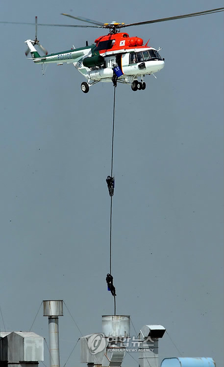 경찰은 이날 오전 9시50분께 헬기를 이용해 특공대원 10여명을 차례로 도장1공장