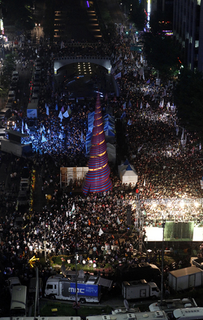이날 문화제에서는 < 좋아서하는 밴드 > , < 일단은준석이들 > , < 우리나라 > , 가수 손병휘 등이 공연을 펼쳐 학생과 시민들을 격려했다. 문화제는 < 우리나라 > 의 공연을 끝으로 10시 30분께 마무리됐다. 경찰은 문화제 내내 해산 경고 방송을 했지만 청계광장 출입은 자유롭게 허용했다. 문화제가 끝난 뒤 밤 10시 40분께 학생과 시민 3000여명은 거리 행진을 시작했다.