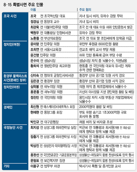 <이재명정부 특별 사면 명단 > 이재명정부 특별 사면 명단 엄중한 죄의 심판을 받은 사람들을 대통령이라는 직위를 이용하여대부분 특별 사면시키네...자기의 직위를 이용하여 자녀 대학 부정 입학...이거 뭐하는건가? 이재명정부 2025.08.11